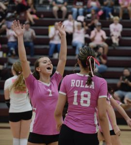 The Rolla High School volleyball team celebrated their 2025 senior night with a game against Jefferson City. On Oct. 2, surrounded by friends and family, seniors Ava Cavender, Gabby Cook, and Bridgette Starns commemorated their final year as a part of the RHS volleyball program.